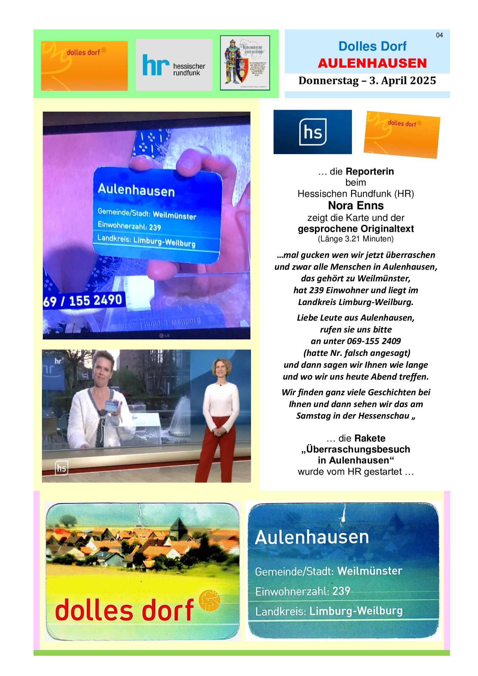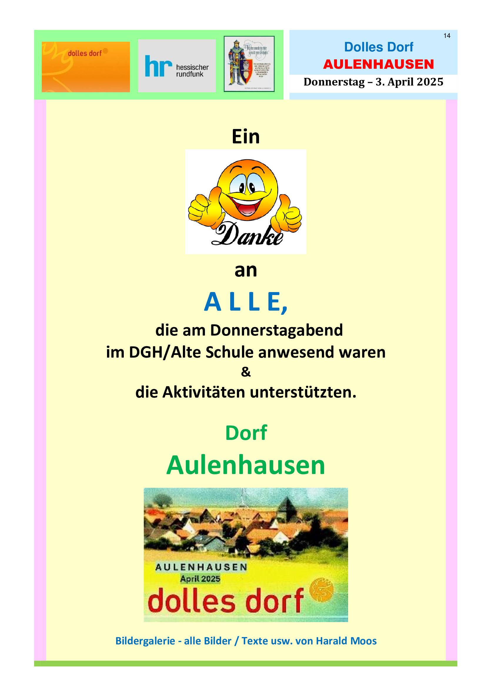 Bildergalerie Auslosung "DOLLES DORF" - Do. 3. April 2025 - 21 Bilder/Bilderseiten